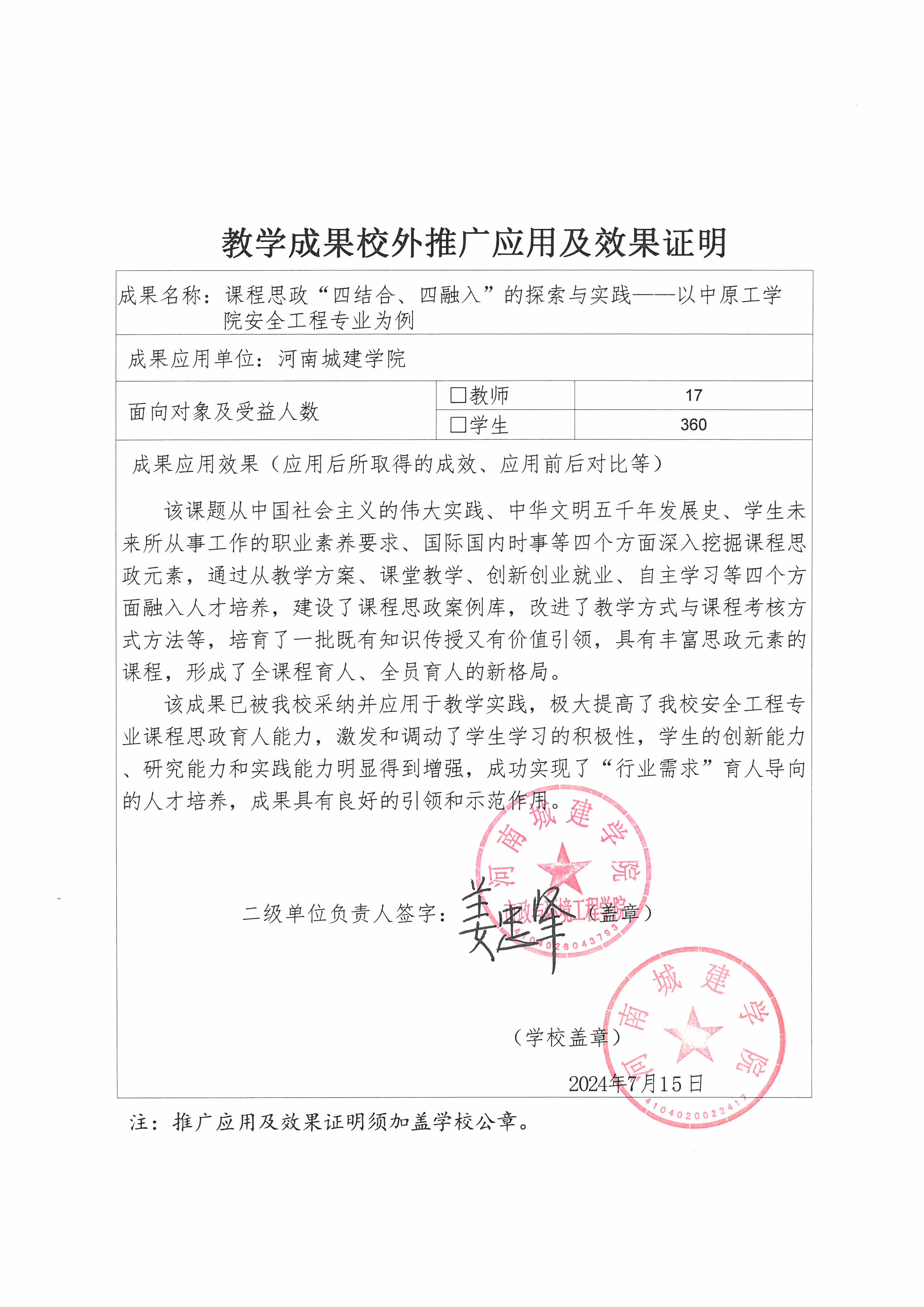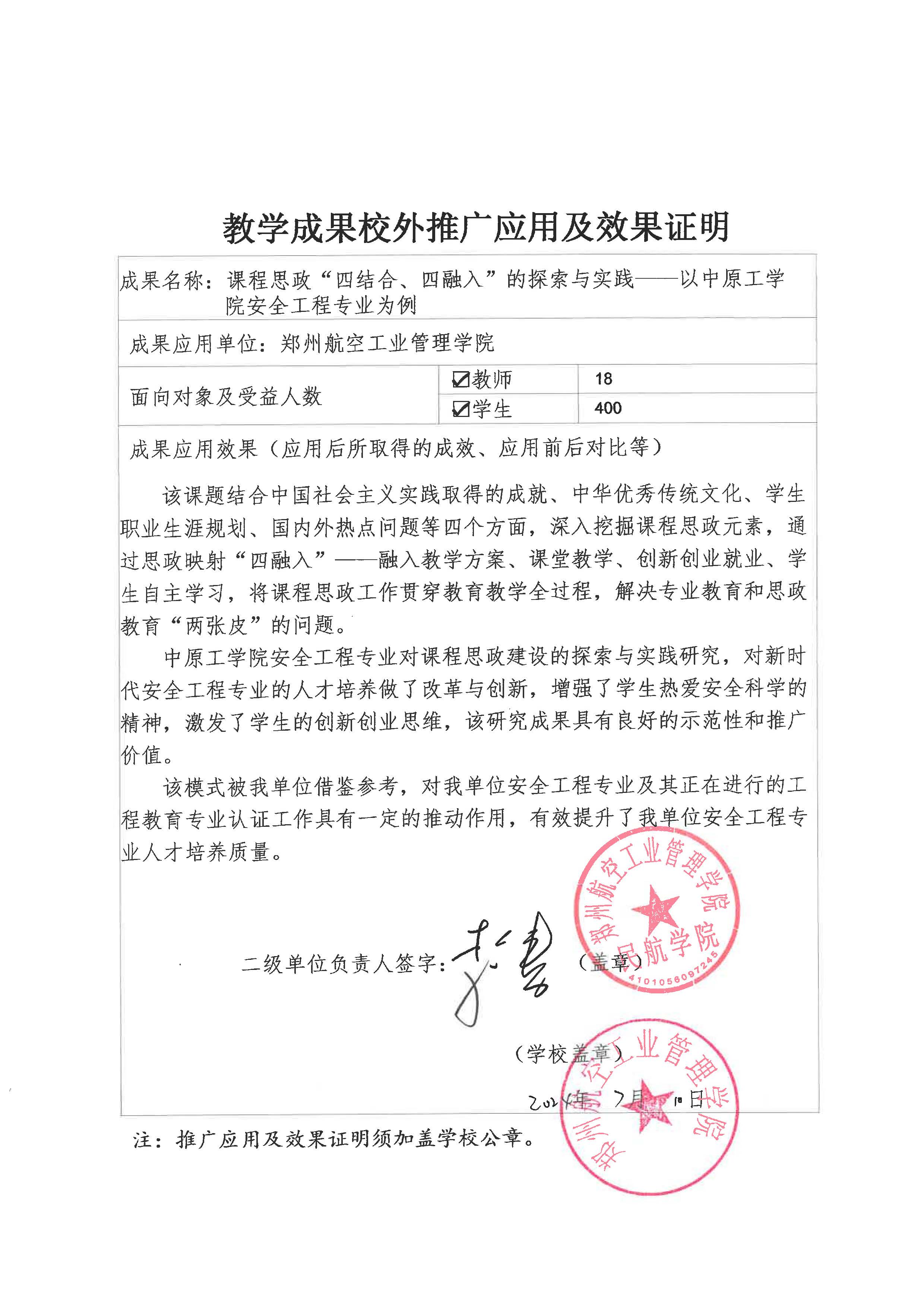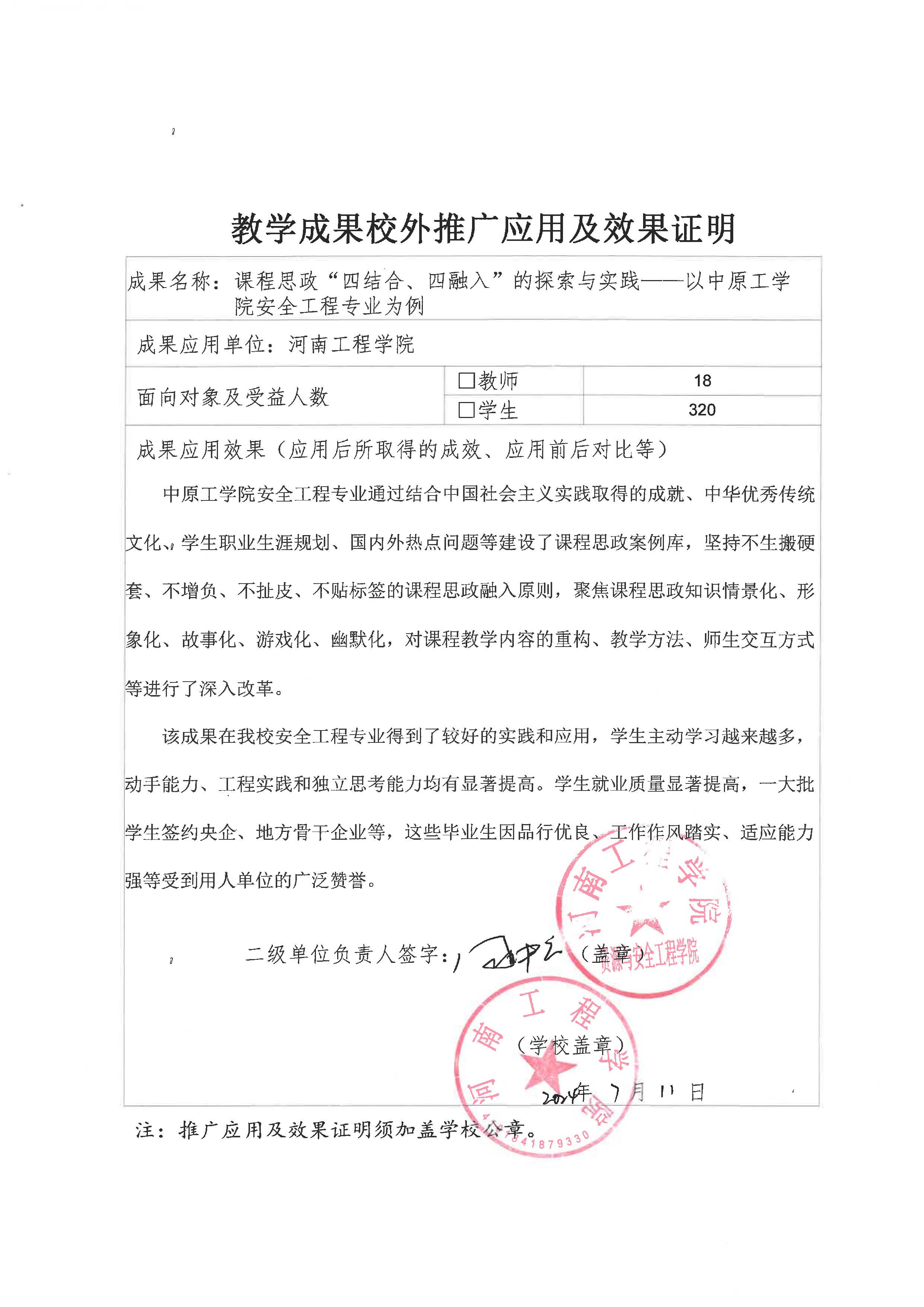 专家您好,感谢您关注中原工学院教学成果奖——课程思政“四结合、四融入”的探索与实践——以中原工学院安全工程专业为例。