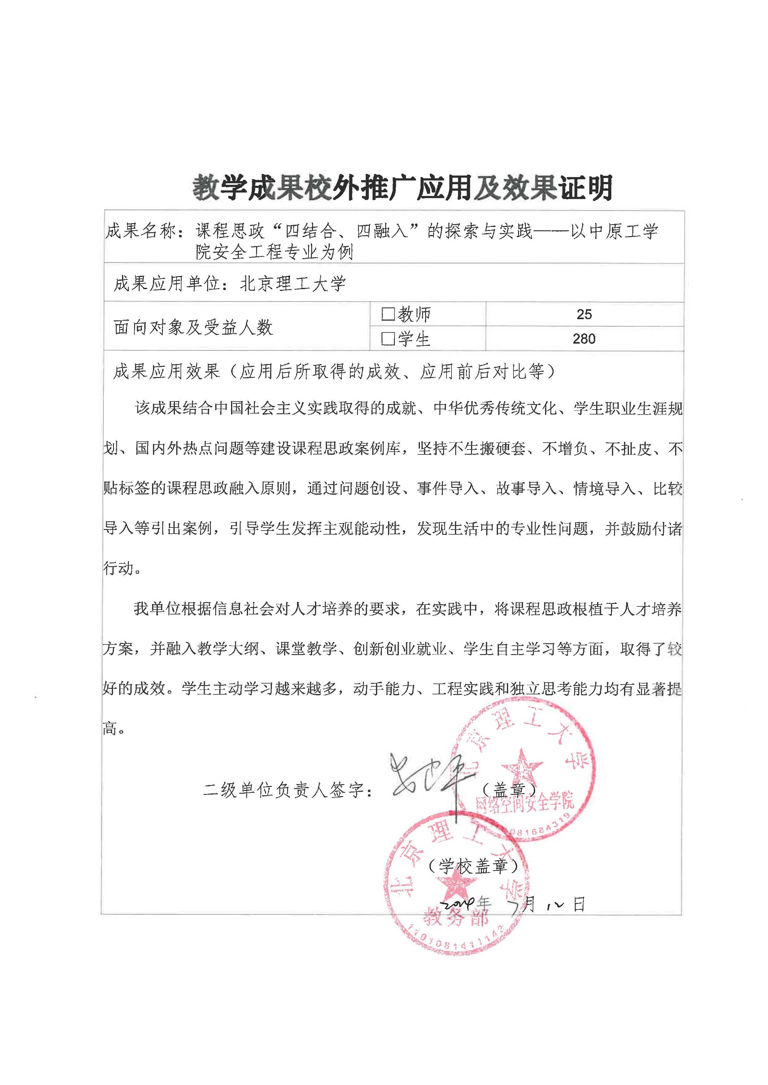推进课程思政建设,是坚持社会主义办学方向、落实立德树人根本任务的重要举措。课题组以促进学生成长、成才为出发点和落脚点,深入贯彻习近平新时代安全生产重要思想,根据信息社会对安全工程师的职业素养要求,开展了卓有成效的思政教学实践,取得了较好的成效。