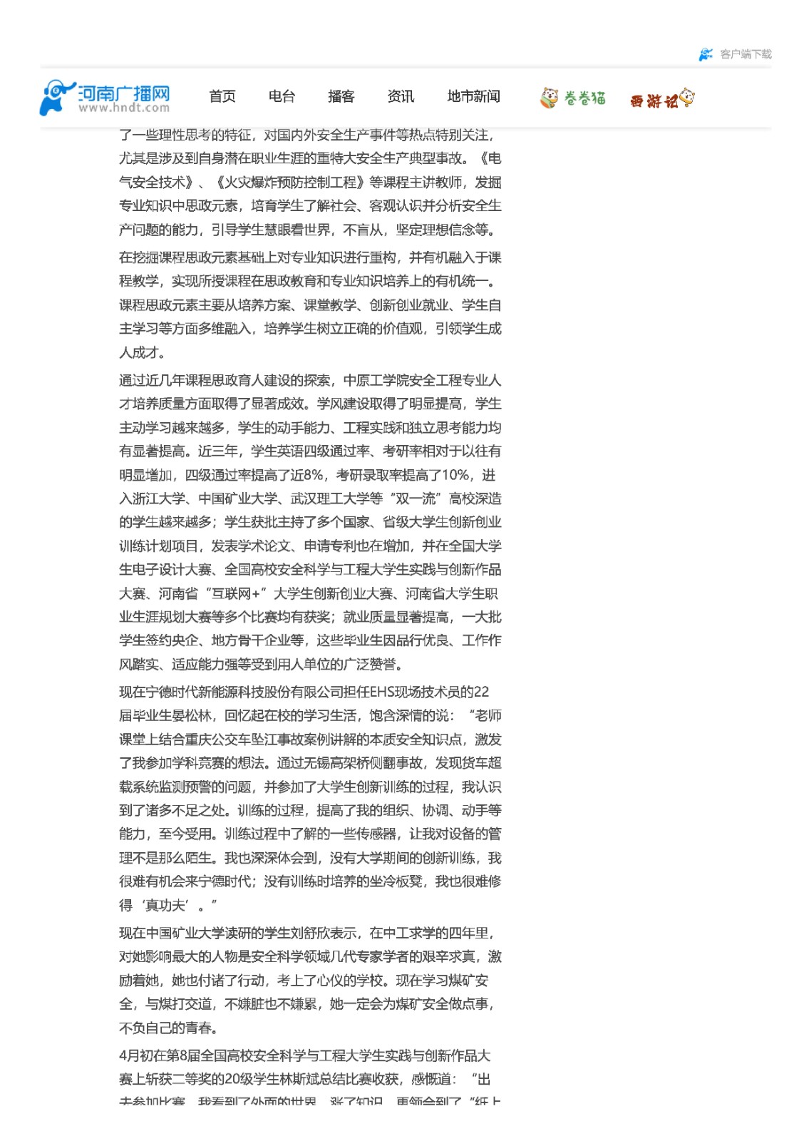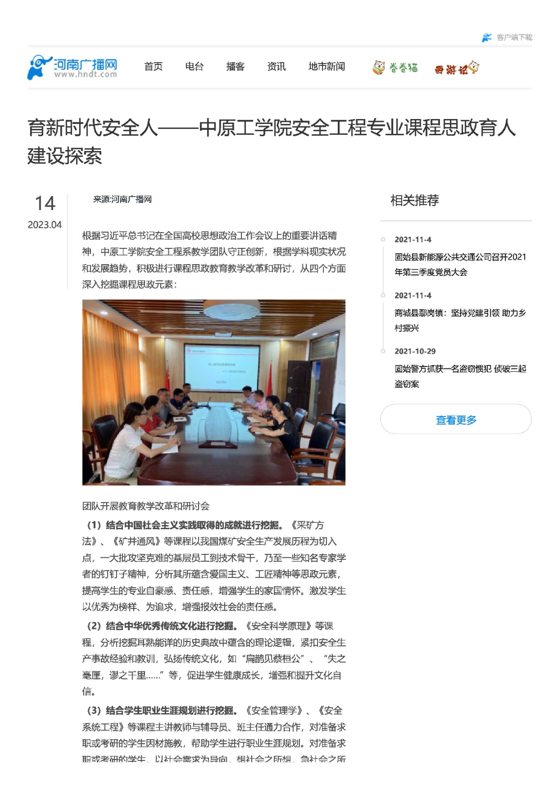 课程思政“四结合、四融入”的探索与实践——以中原工学院安全工程专业为例 教学成果奖