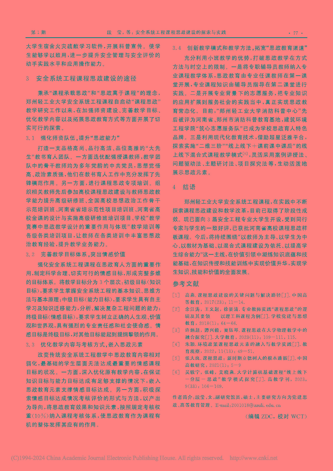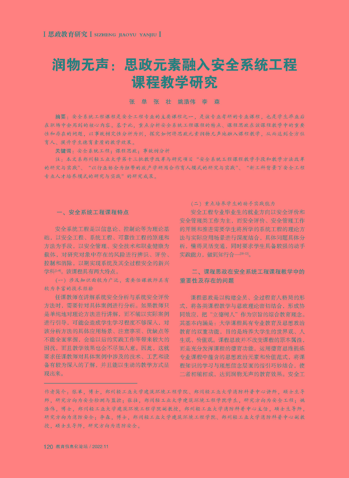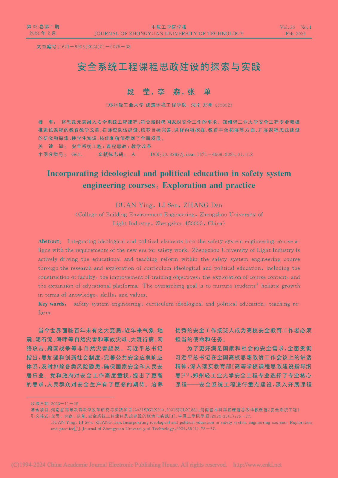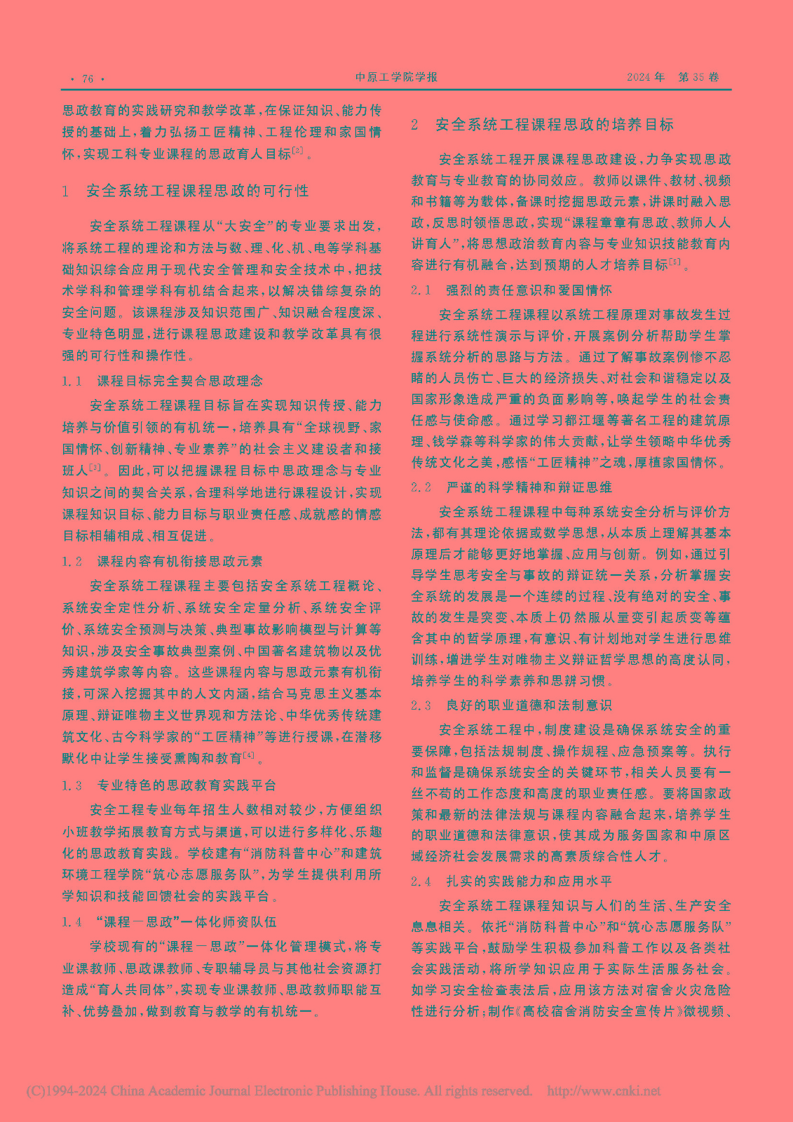课程思政“四结合、四融入”的探索与实践——以中原工学院安全工程专业为例 教学成果奖