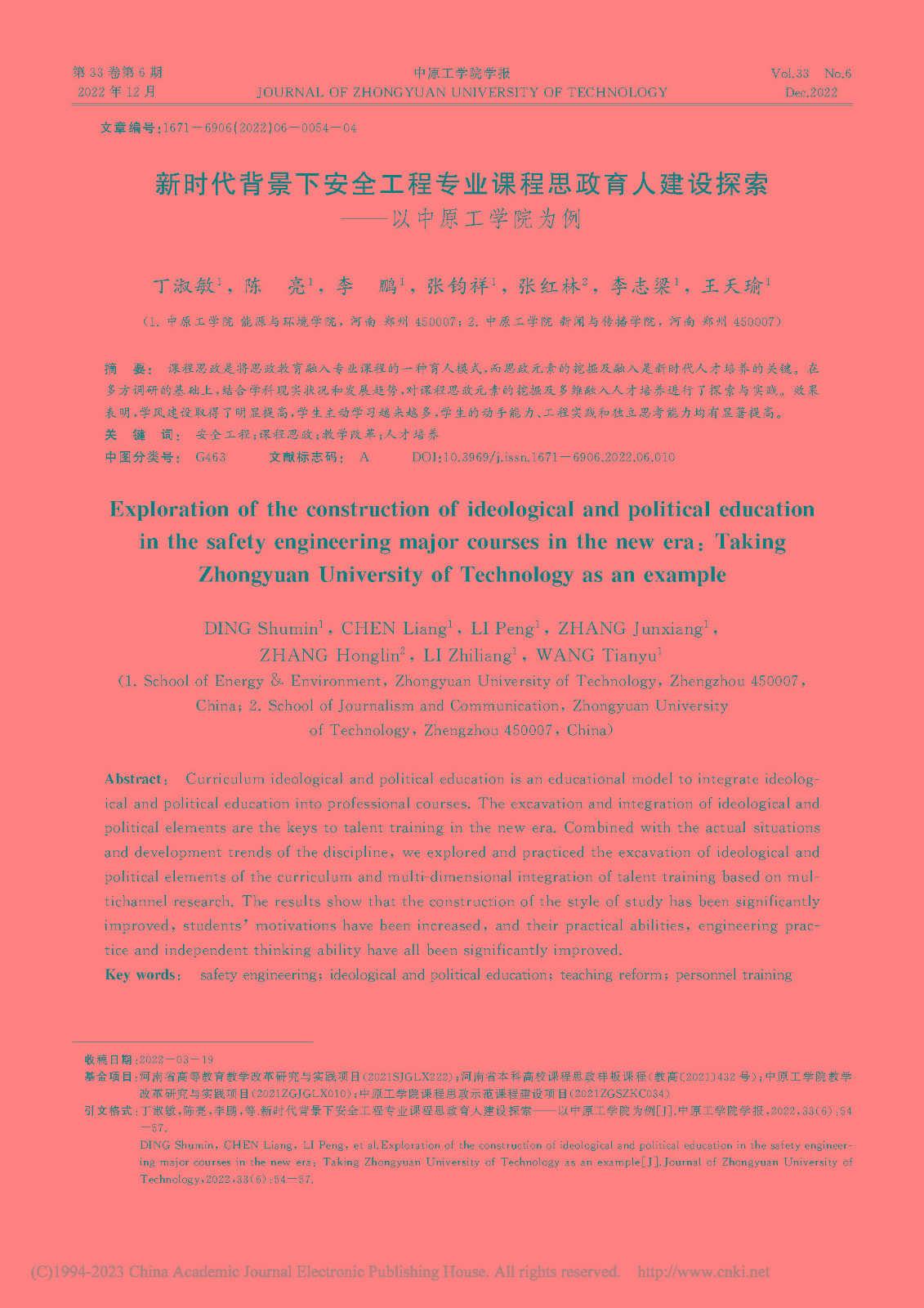 专家您好,感谢您关注中原工学院教学成果奖——课程思政“四结合、四融入”的探索与实践——以中原工学院安全工程专业为例。